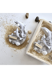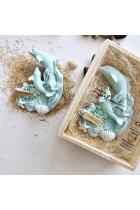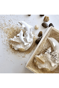 A nossa peça em gesso captura a beleza e a alegria dos golfinhos a saltar no mar, trazendo a liberdade e a magia do oceano para o seu lar.