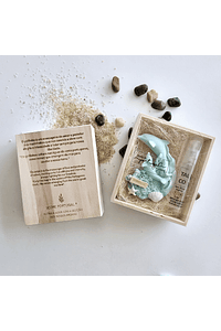 | Embalagem | Caixa de madeira, íman, vaporizador, película de PVC |